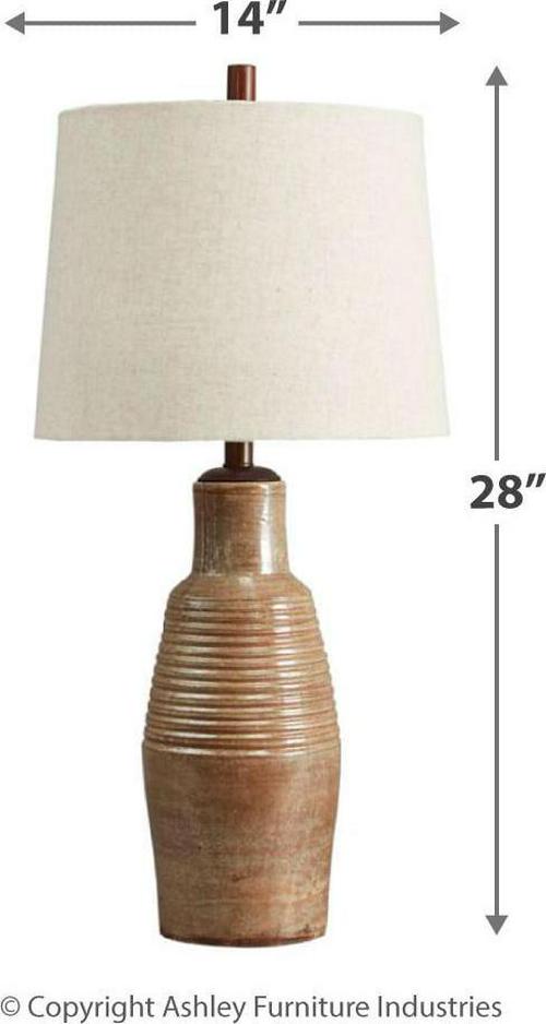 Made of terracotta (ceramic) with fabric modified drum shade,3-way switch,1 type A bulb (not included); 150 watts max or CFL 25 watts max; UL Listed,Assembly required,MINOR ASSEMBLY: Instructions included. Uses 1 type A bulb (not included); 150 watts max or CFL 25 watts max; UL Listed. Measures 14″ W x 14″ D x 30″ H