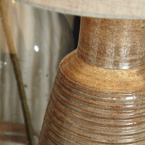 Delight in an earthy elegant aesthetic with the Calixto terracotta table lamp. Loaded with multitonal interest, the iridescent taupe base with ribbed texture exudes a sense of raw refinement. Three-way switch provides just the right amount of illumination.