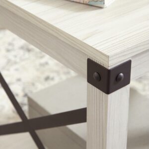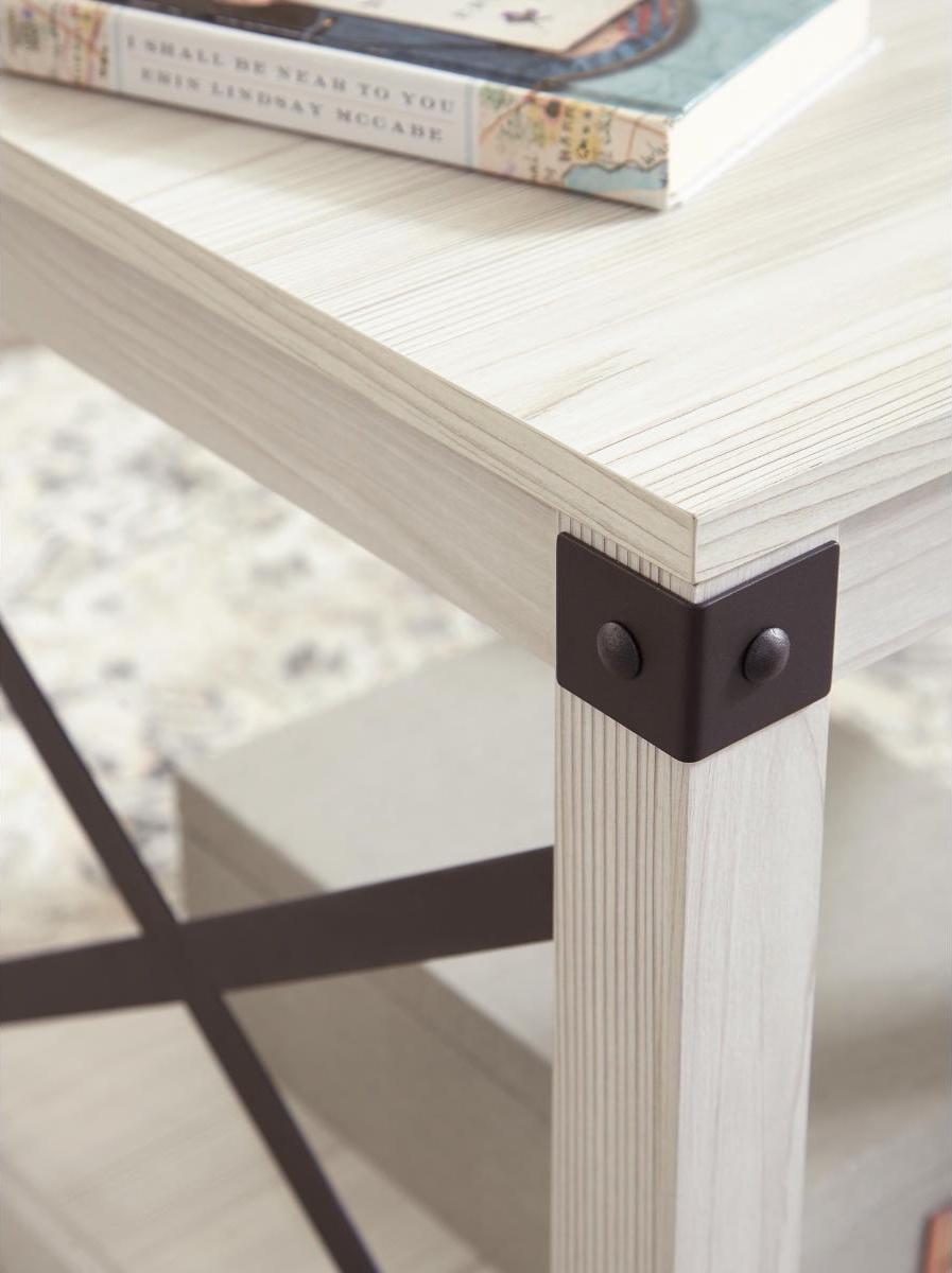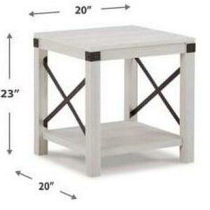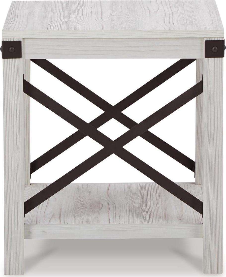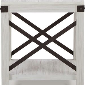 Entertain with ease with the casual, contemporary Bayflynn end table. Designed for the modern tastemaker, the minimalist design wows with crossbuck metal accents and a laminated surface with a whitewashed effect. An open display shelf provides ample space for books and baskets, or for showcasing your special decor accessories.