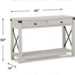 If you re going for a simply striking addition to your space, the Bayflynn console table really makes a statement, creating an openly elegant place to showcase your style. With its replicated vintage barn wood effect in a subtly whitewashed color tone, this piece is decidedly understated yet rich with character. Metal crossbuck accents give it just enough flair.