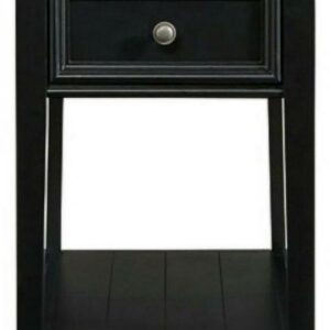 Made with solid wood components and MDF panel,Vintage black finish,Round metal knobs with dark pewter-tone finish,Open lower shelf,Single smooth-gliding drawer