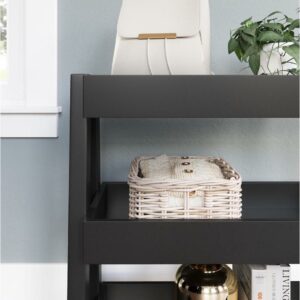 Made of wood and engineered wood,Dark metallic gray finish,3 tray shelves,7.5″ net opening between shelves,Assembly required