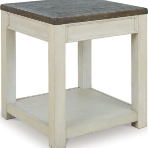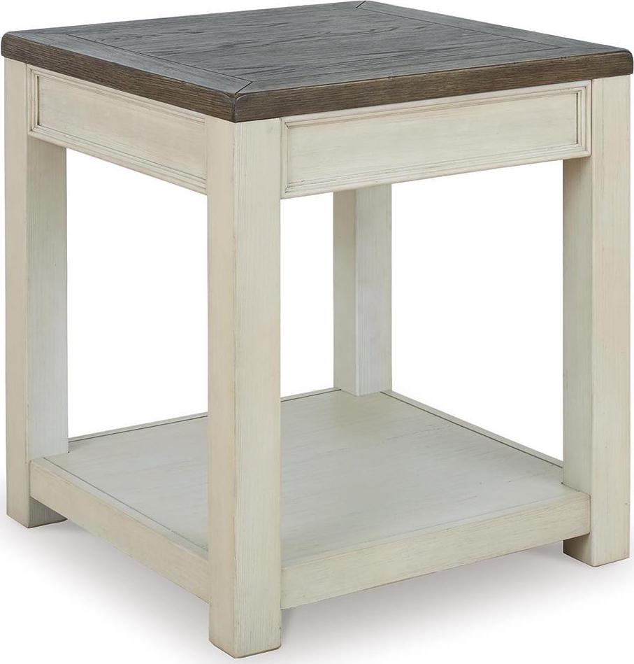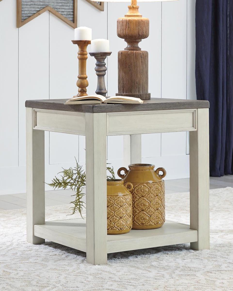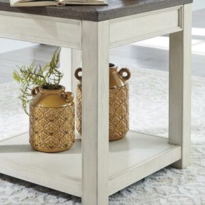 Enjoy beautiful cottage style in the classic Bolanburg end table. Sporting a plank-effect top and a textured two-tone finish, this end table blends timeworn character with modern functionality. A spacious lower shelf lends dimension to the design.