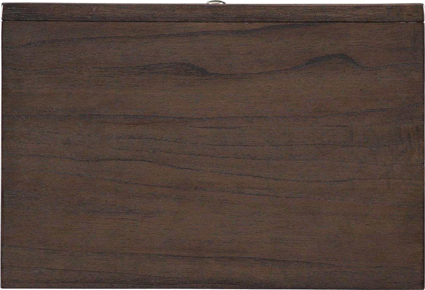 Made of wood, Mindi veneers and engineered wood,Chestnut brown finish with burnished edges and dark grain contrast,Brushed nickel-tone hardware,3 smooth-gliding drawers with dovetail construction,Top drawer with felt lining