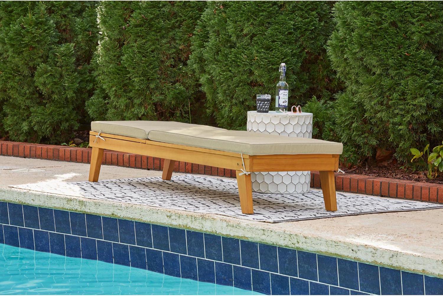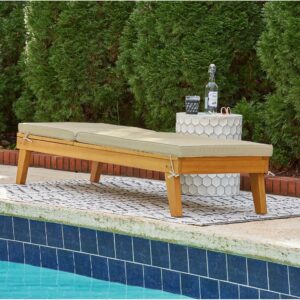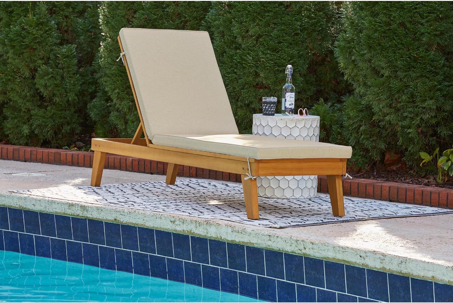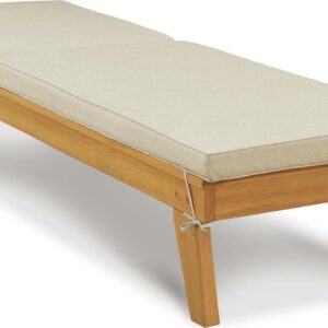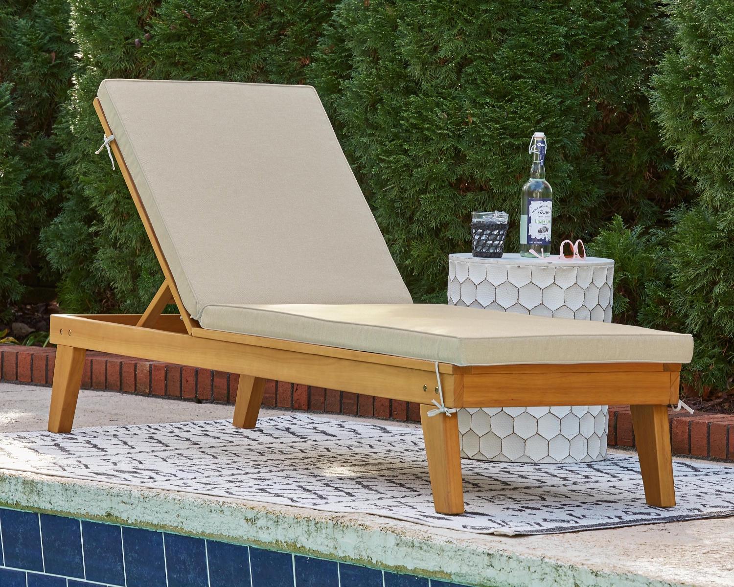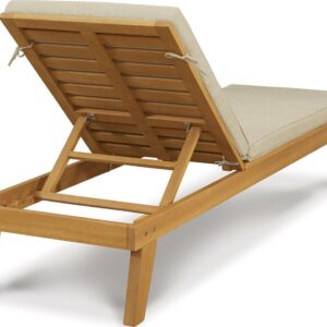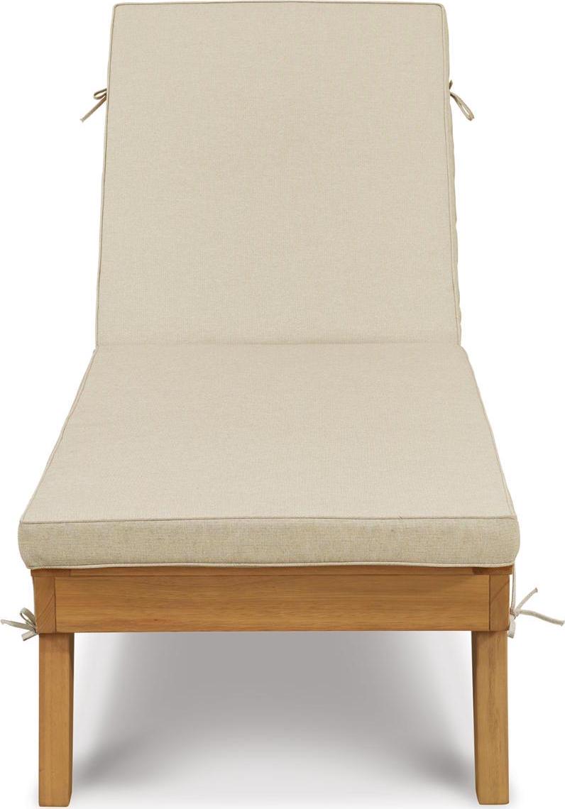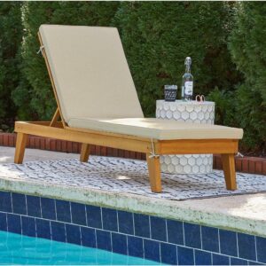 Strike a high-style pose with the Byron Bay outdoor chaise lounge with cushion. Inspired by urban organic design, this quality crafted outdoor lounge chair is made for looks and longevity with a sturdy eucalyptus wood frame with slatted styling. Rest assured, this chaise lounge with multiple recline positions comes complete with a comfy, all-weather cushion wrapped in Nuvella fabric that s a breeze to clean.