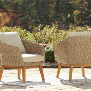 Signature Design by Ashley Casual Crystal Cave Outdoor Lounge Chair with Cushion (Set of 2) Beige