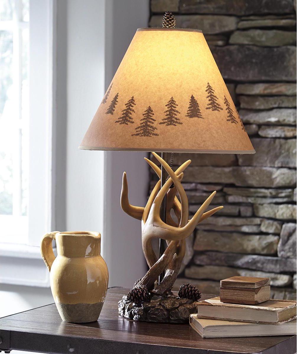 Bring home an upscale touch of mountain retreat style with the Derek table lamp. Amazing how a rugged mix of rock, antler and pinecone accents looks so beautifully refined in the right setting.