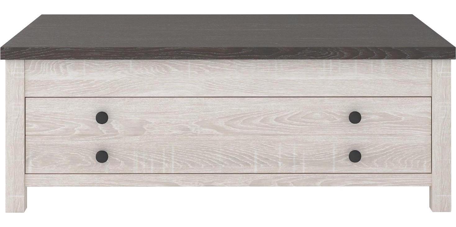 Made of decorative laminate over engineered wood with two-tone, gray and antiqued white color scheme,Lift top design,Assembly required,SPACIOUS SURFACE: Measuring 45″ W x 27″ D x 17″ H, this two tone cocktail table looks great set in both small and large living room spaces for tea time or movie night,ASSEMBLY REQUIRED: Easy-to-follow instructions, tools and hardware included