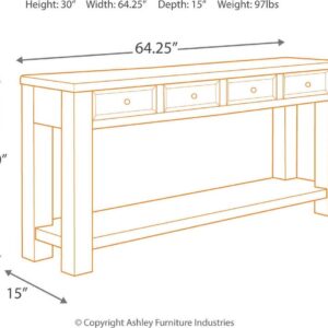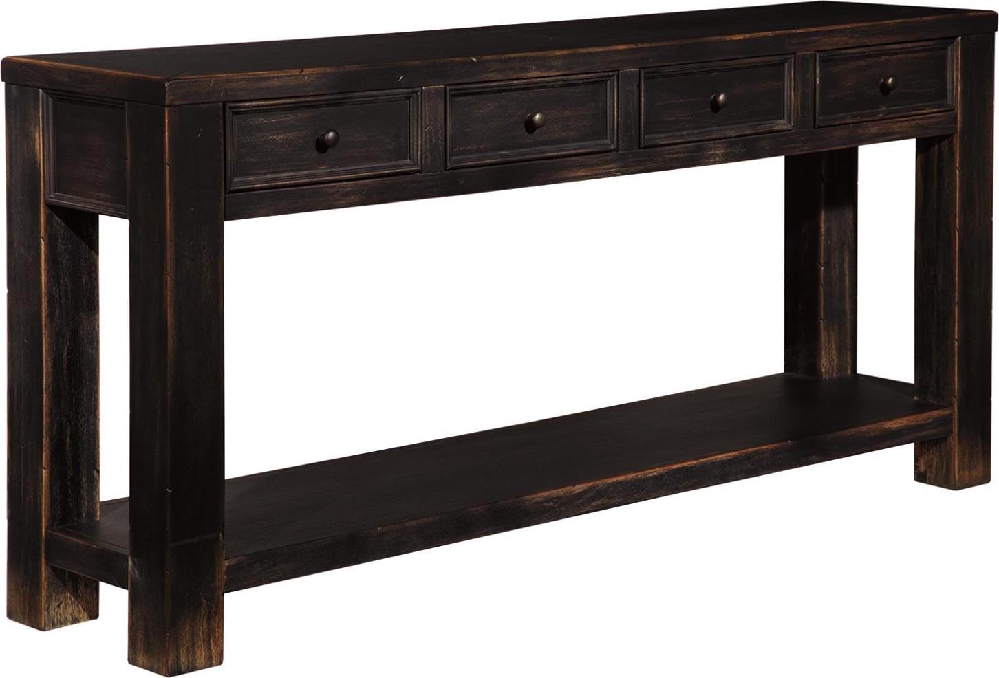 Inspired by the sheer simplicity and weatherworn beauty of primitive furniture, Gavelston sofa table brings a relaxed sense of style into your space. Show off accent pieces on the bottom shelf, while concealing whatnots in the handy drawers.