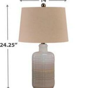 Made of ceramic with fabric modified drum shade,Beige and white glaze,3-way switch,1 type A bulb (not included), 150 watts max or CFL 25 watts max; UL Listed,Minor assembly