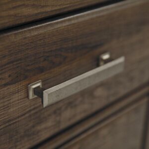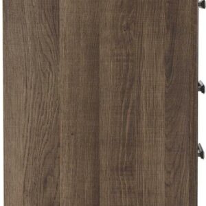 Made of engineered wood and decorative laminate,Vintage aged brown rough sawn finish over replicated oak grain,Pewter-tone hardware,2 drawers,Assembly required