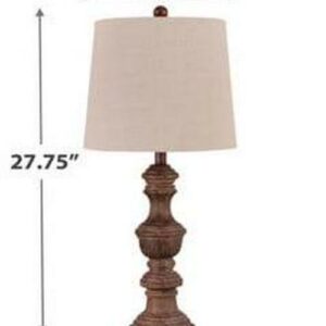 Made of brown faux wood with a modified drum shade,3-way switch,1 type A bulb (not included); 100 watts max or CFL 23 watts max; UL Listed,Clean with a soft, dry cloth,Assembly required