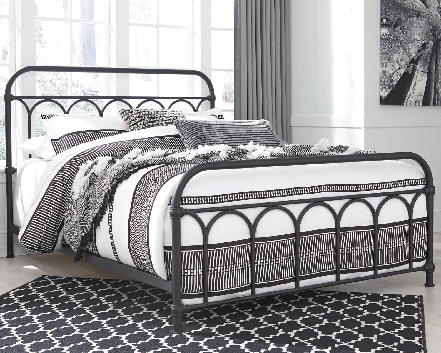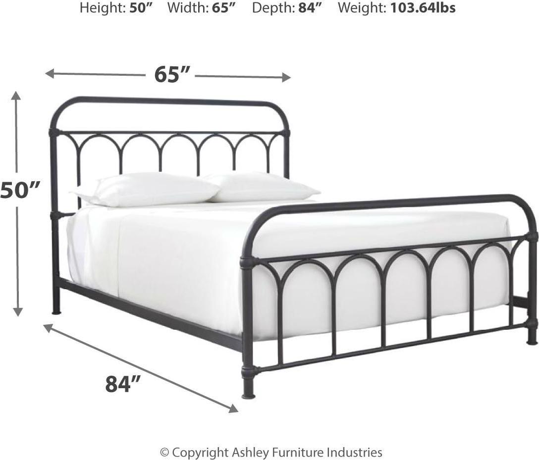 Looking to bring back a sense of bygone charm Dream it, live it with the Nashburg queen metal bed. Matte black frame with moulded fittings” brilliantly mimics wrought-iron beds from yesteryear for a look that s perfect for your modern farmhouse or cottage-quaint escape.”