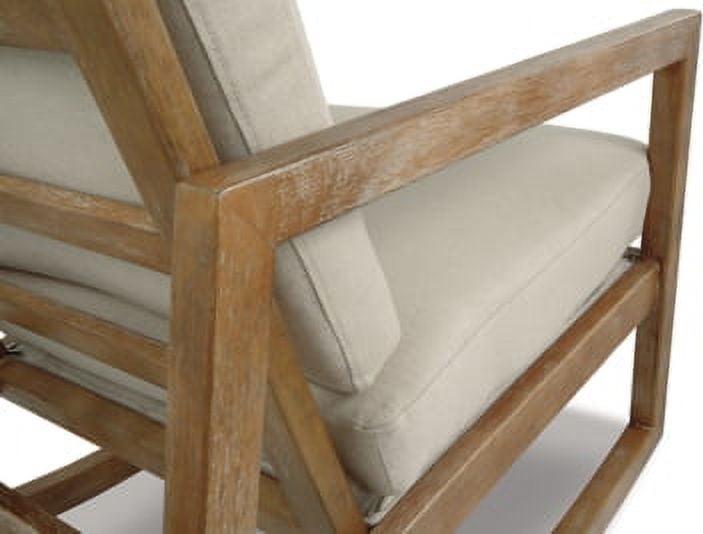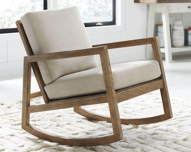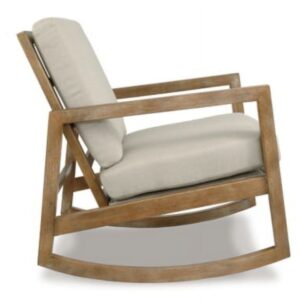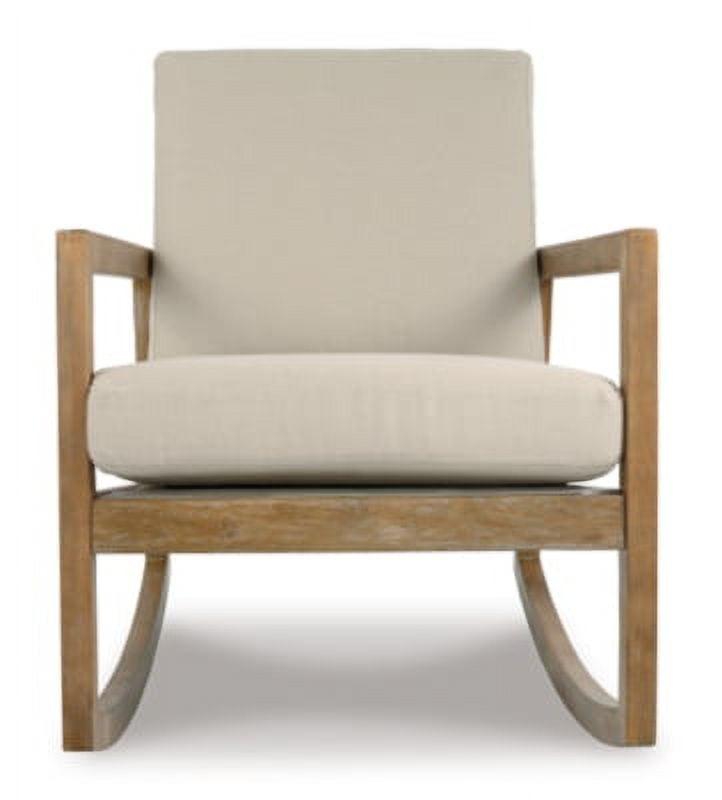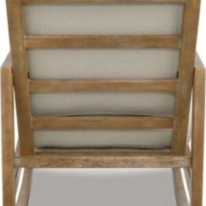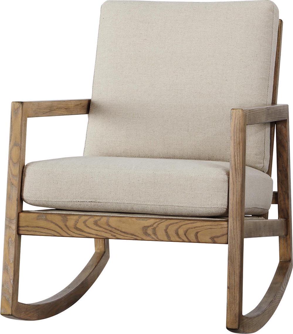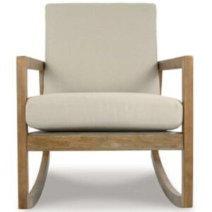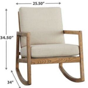 Novelda accent chair is a natural beauty. Neutral fabric on light wood tone frame expresses a humble and inviting quality. Sleek rocking chair profile is a worthy addition to a reading nook or sitting area. And with cushions so plush, you re in for a relaxing time.