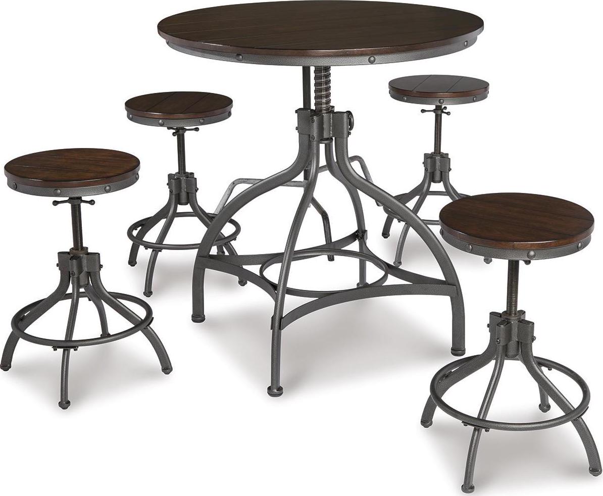 Signature Design by Ashley Casual Odium Counter Height Dining Table and Bar Stools (Set of 5) Brown