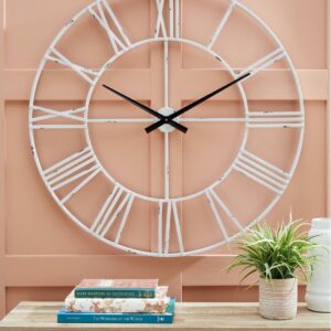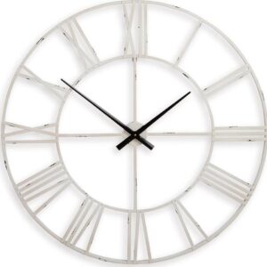 Casual style meets practical function with this Paquita wall clock. Roman numerals are easy to read on the sleek metal frame in an antiqued white finish. Keeping track of time has never been so stylish.