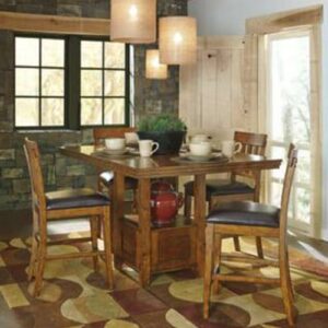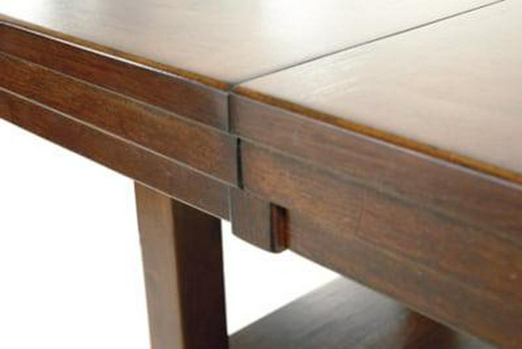 Have an appetite for clean-lined design, but with warmth and rustic character Satisfaction is served with the Ralene counter height extension dining room table. We love how its gently distressed, burnished finish and shelf-style pedestal incorporate depth and character. And its straightforward lines A wonderful show of good taste.