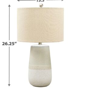 With a textured neutral glaze, the Shavon table lamp brings thoughts of sun, surf and sand to your space. Turn coastal chic to the contemporary side with this transitional lamp.