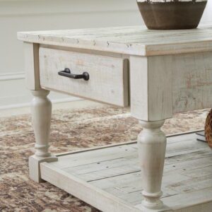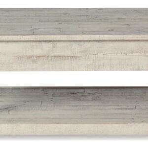 With its distinctive whitewash finish, plank-effect styling and distressed touches that lend a reclaimed sensibility, the Shawnalore coffee table serves up a delightful twist on farmhouse style. Crafted with solid pine wood, this rustically refined coffee table is sure to satisfy for years to come.