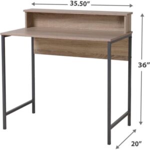 Made of engineered wood and metal,Light brown wood finish; gunmetal finish legs,Attached hutch for additional display space,Light weight and easy to assemble,ASSEMBLY REQUIRED: Easy-to-follow instructions and hardware included