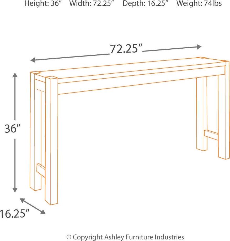 Made of veneers, wood and engineered wood,Counter height,Assembly required,COUNTER HEIGHT: This dining table measures 72.25″ W x 16″ D x 36″ H and is perfect for gatherings in an open concept home or a spot for appetizers and hors d’oeuvres,Dining chairs sold separately