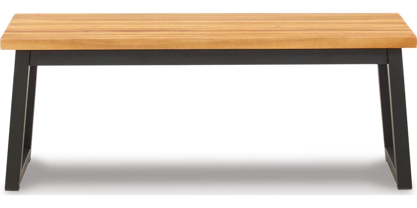 Bring an uptown feel to an outdoor space with the Town Wood 3-piece outdoor furniture set. Designed to comfortably seat four, this ultra-cool outdoor dining table and bench set sets a new standard in outdoor living. The tabletop and bench seats are richly crafted of acacia wood with wonderful tonal variation. The tubular steel legs are sleek, sturdy and slightly canted for an interesting angled effect.