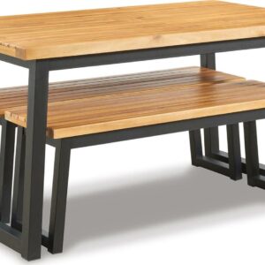 Signature Design by Ashley Casual Town Wood Outdoor Dining Table Set (Set of 3) Brown/Black