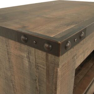 Made of engineered wood and decorative laminate,Warm rustic plank finish over replicated oak grain and authentic touch,Antiqued bronze-tone hardware,1 storage cubby,1 smooth-operating drawer