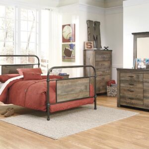 Whether she loves horses or he’s a cowboy at heart, the Trinell nightstand matches their authenticity. Rustic finish, plank-style details and nailhead trim pay homage to reclaimed barn wood, making for a chic look loaded with charm. An included charging station for tablets, cellphones and other electronics offers an up-to-date convenience.