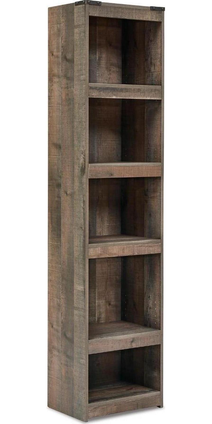 Made of engineered wood and decorative laminate,Warm rustic plank finish replicated oak grain and authentic touch,4 shelves (3 adjustable),Assembly required,READY TO ASSEMBLE: Easy-to-follow instructions and hardware included. 35 minute estimated assembly time