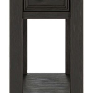 Made of wood, white oak veneers and engineered wood,Weathered grayish brown top,Textured wire brushed base in a black rub-through finish,Chairside end table features plank-styled top,Smooth-gliding drawer perfect for holding remotes and more