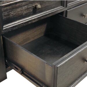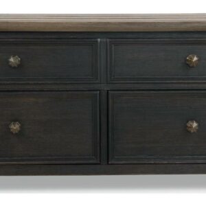 Made of solid and engineered wood and veneers,Dark bronze-tone hardware,Lift top design,4 smooth-gliding drawers,4 casters for easy mobility