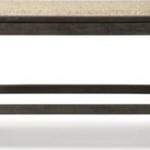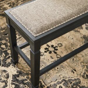 Invite your family into the heart of your home with the Tyler Creek upholstered dining room bench. Tapered legs are a sturdy foundation, while the counter-height design raises the bar on fine dining. Textured black finish and heavy woven neutral upholstery accented with silvertone nailhead trim is trend-right urban farmhouse style without all the fuss.