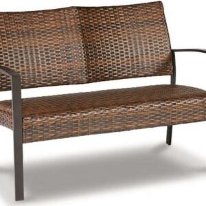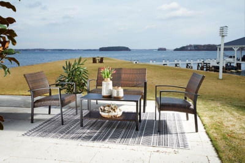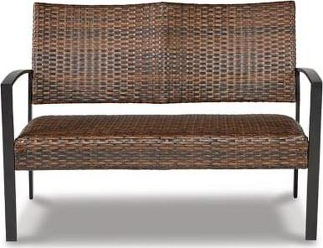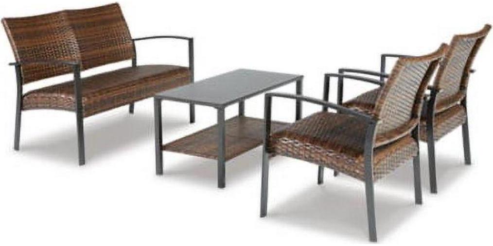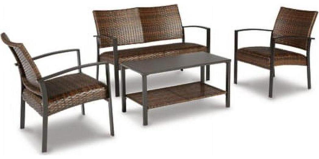 Signature Design by Ashley Casual Zariyah Outdoor Love Chairs Table Set (Set of 4) Dark Brown