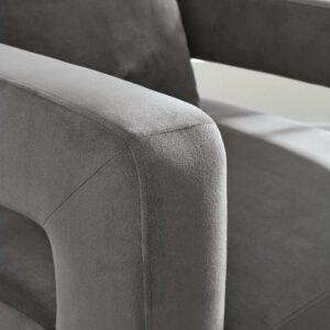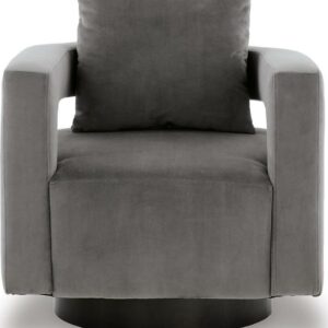 Polyester velvet upholstery in taupe,Loose back cushion and attached seat cushion,Dark bronze-tone swivel base,Easy assembly