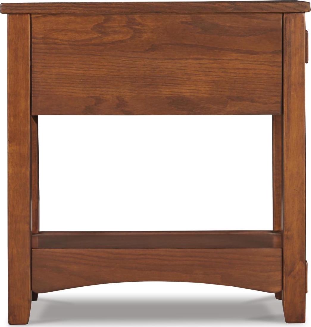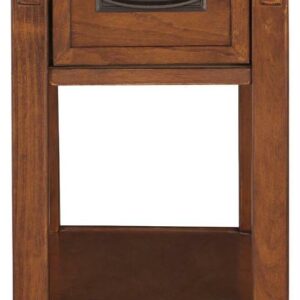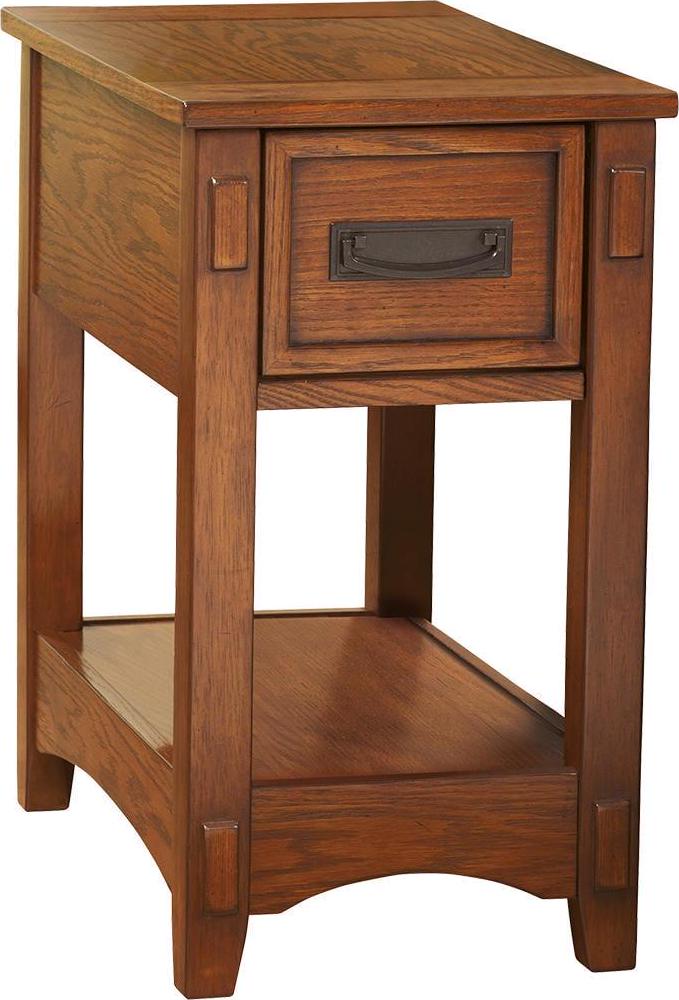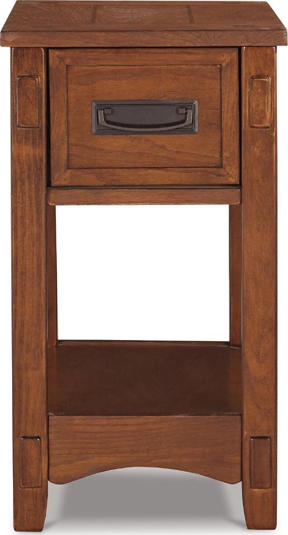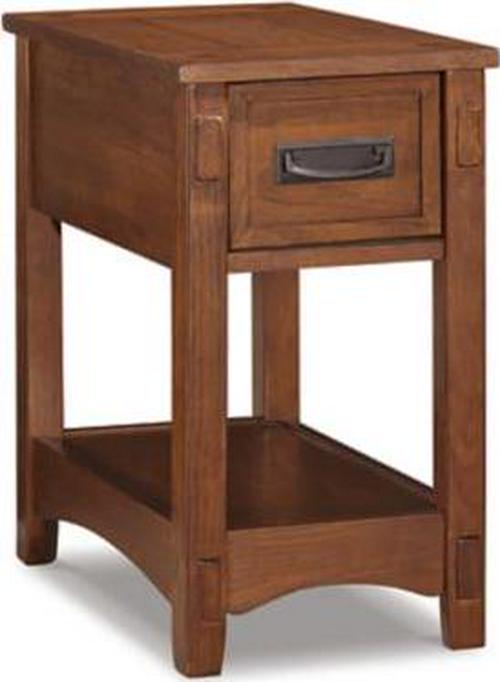 All the great elements of Mission-style design including mortise-and-tenon decorative overlays packed into an adorably sized chairside end table. Small but essential, this accent table includes a deep drawer with removable tray for handy storage.