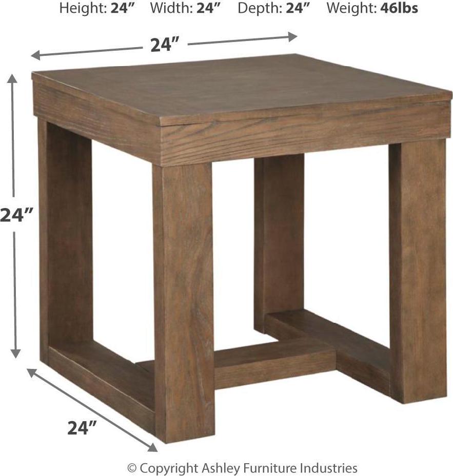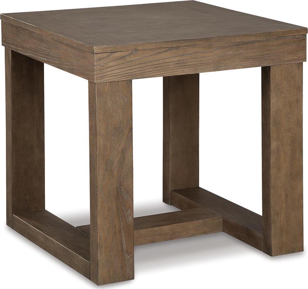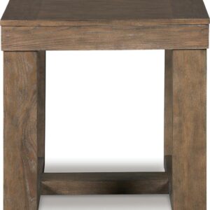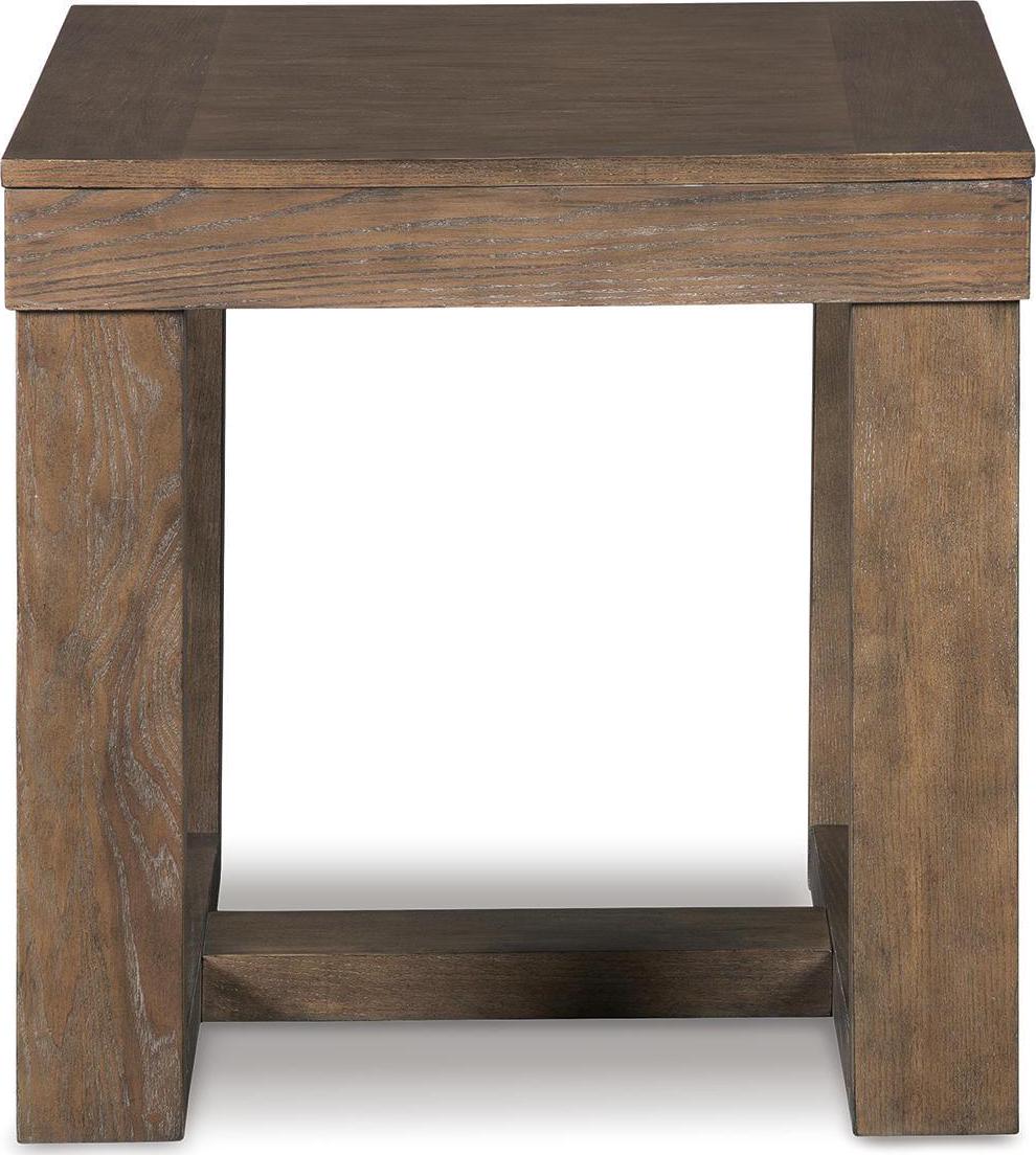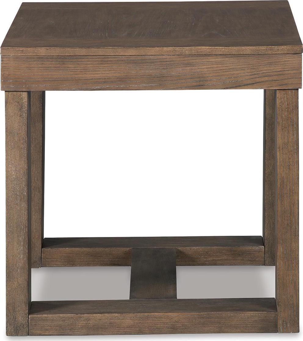 The Cariton end table makes it hip to be square. Bold, blocky profile is enriched with plank-effect styling and a textured grayish brown finish for a look that s cool and contemporary and a vibe that s warm and inviting.