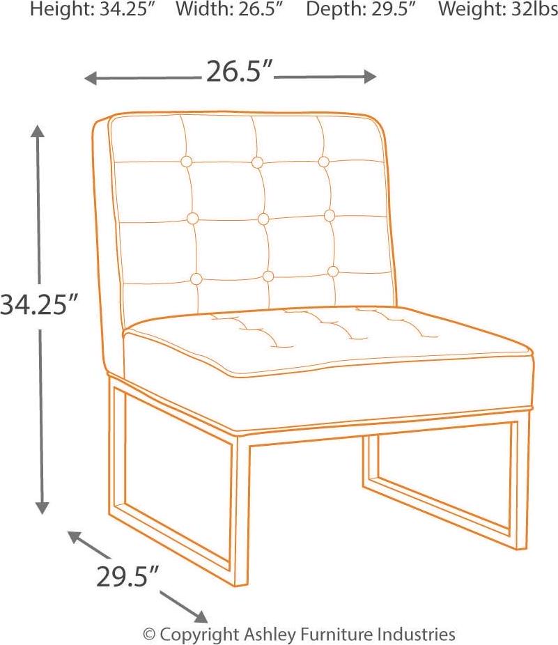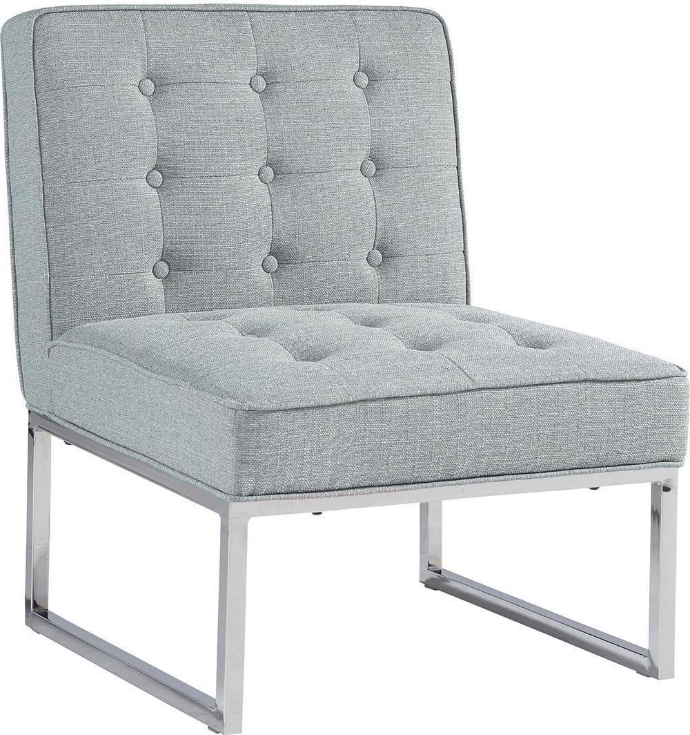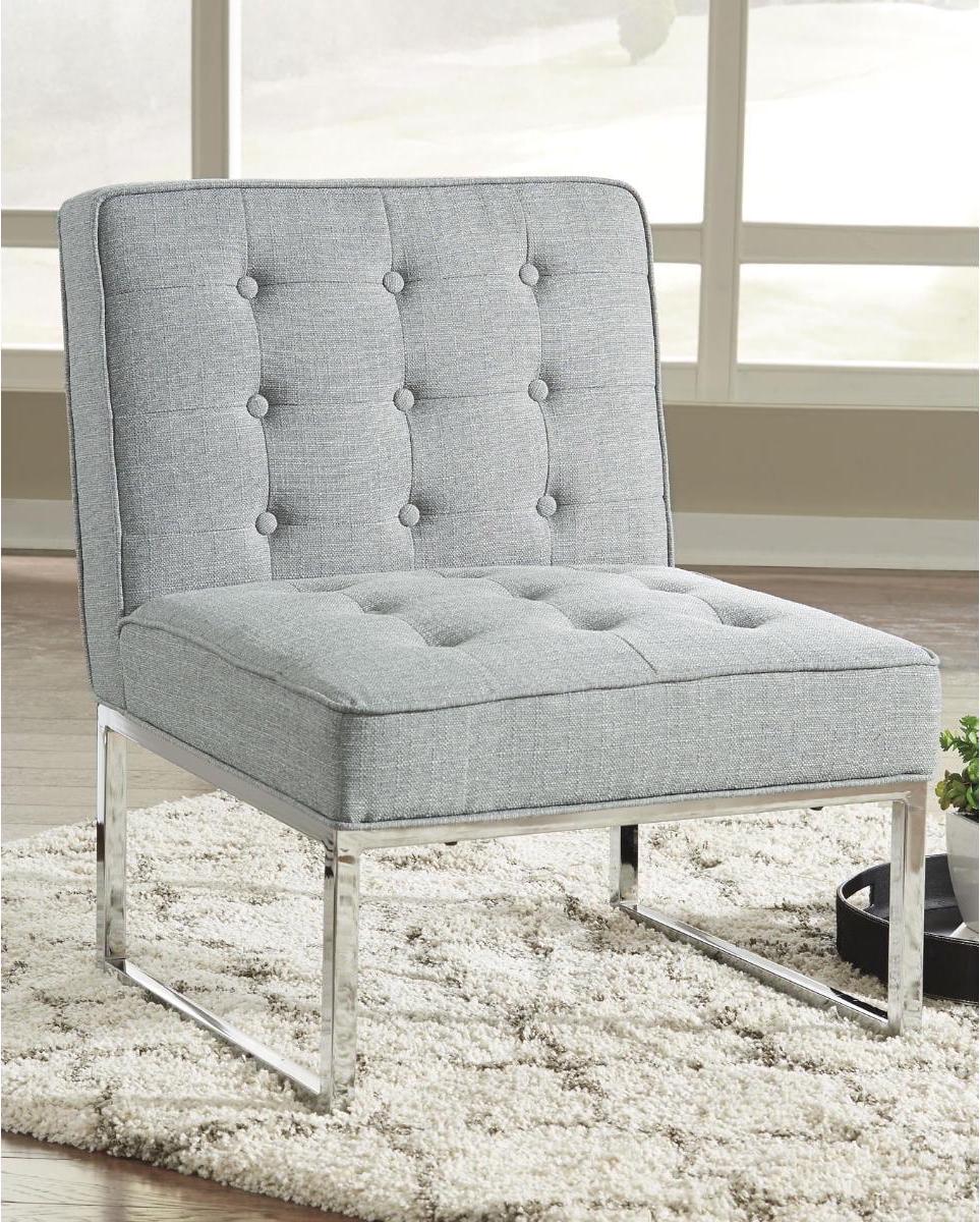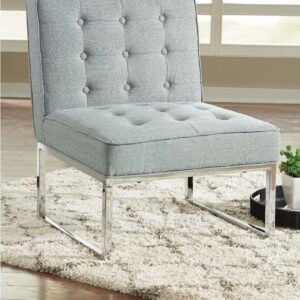Button-tufted seat Yes, please. The armless Cimarosse accent chair allures with contemporary appeal. Gorgeous chrome-tone base supports two comforting light gray cushions. Its neutral aesthetic complements your home with an upscale touch.