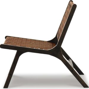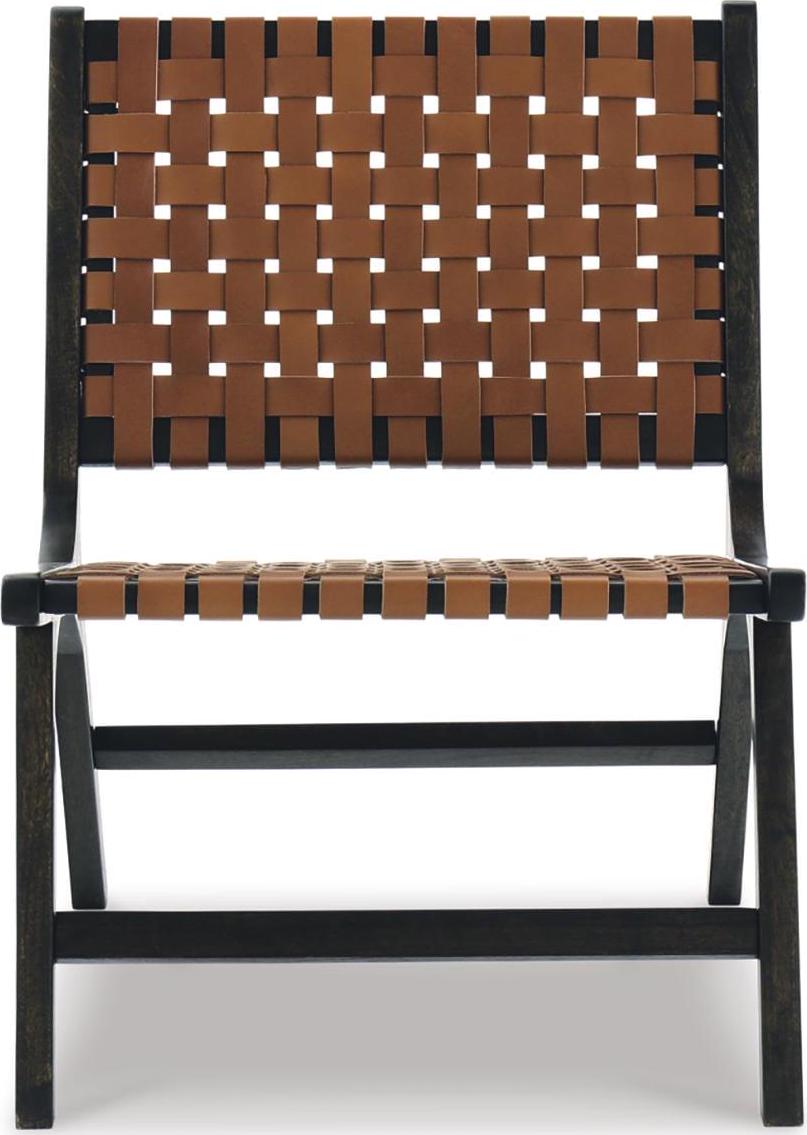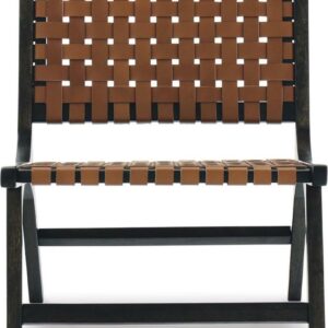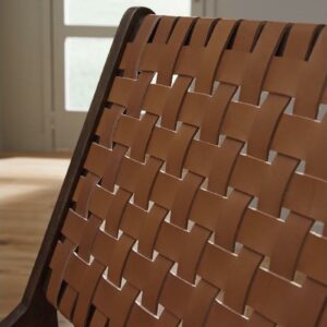On-trend and exceedingly stylish, the Fayme mid-century modern lounge chair is sure to be hit with your contemporary home. Featuring a solid wood armless frame in dark brown finish with leather strip woven back and seat in camel-tone basket weave pattern.