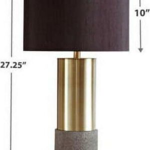 Faux concrete sets the stage for this ultra contemporary brass-tone table lamp. This substantial lamp is topped with a chic black shade with goldtone foil interior for an elegant aesthetic.