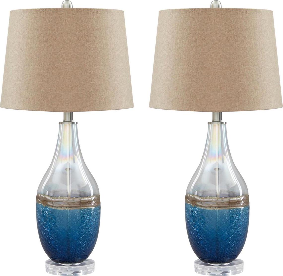 Signature Design by Ashley Contemporary Johanna Table Lamp (Set of 2) Blue/Clear