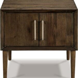 With its tapered peg legs and low, linear profile, the Kisper end table with cabinet storage space is a mastery in mid-century minimalism. The look may be high-end gallery design, but the price is beautifully down to earth.
