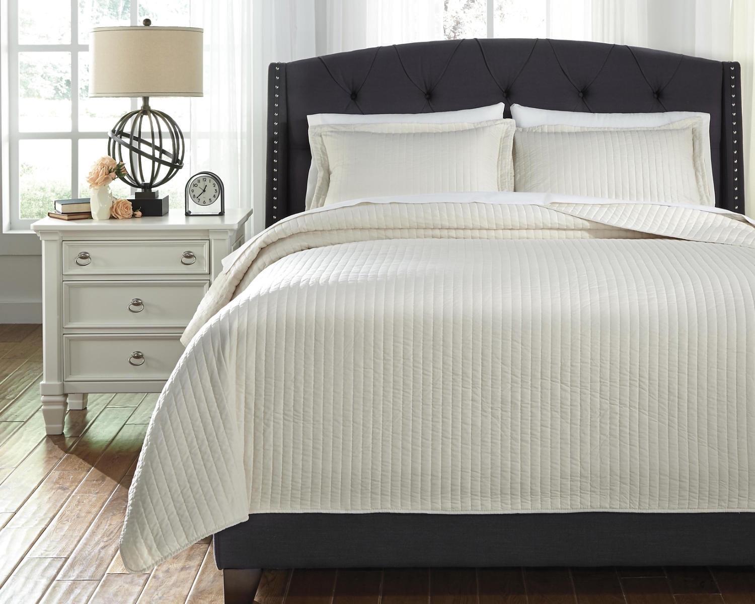 Raleda coverlet set sets the scene for a clean, fresh, less-is-more sense of style. Vertical channel stitching infuses the look with just enough texture. Machine washable fabric is made for easy living.