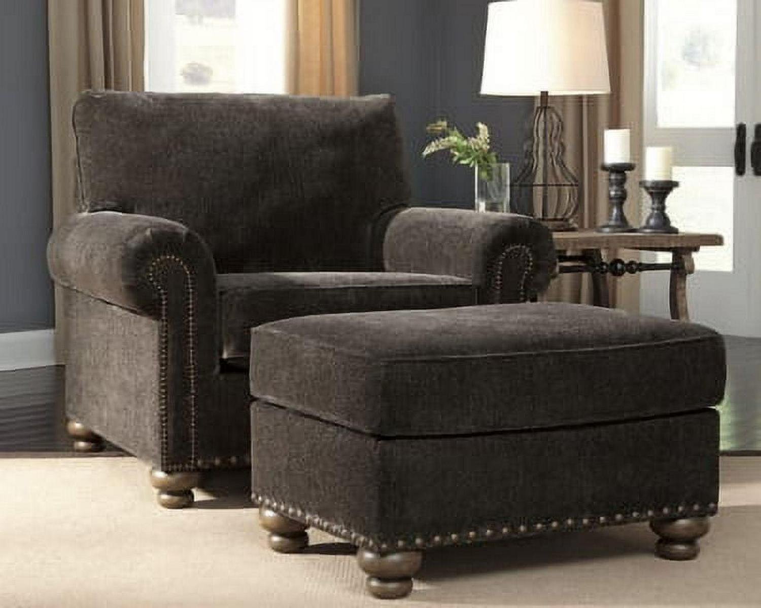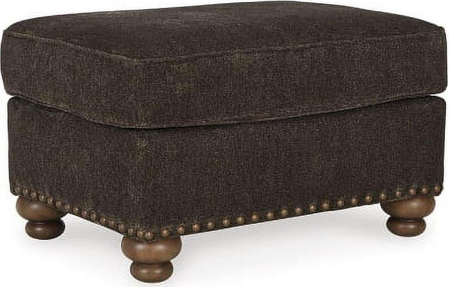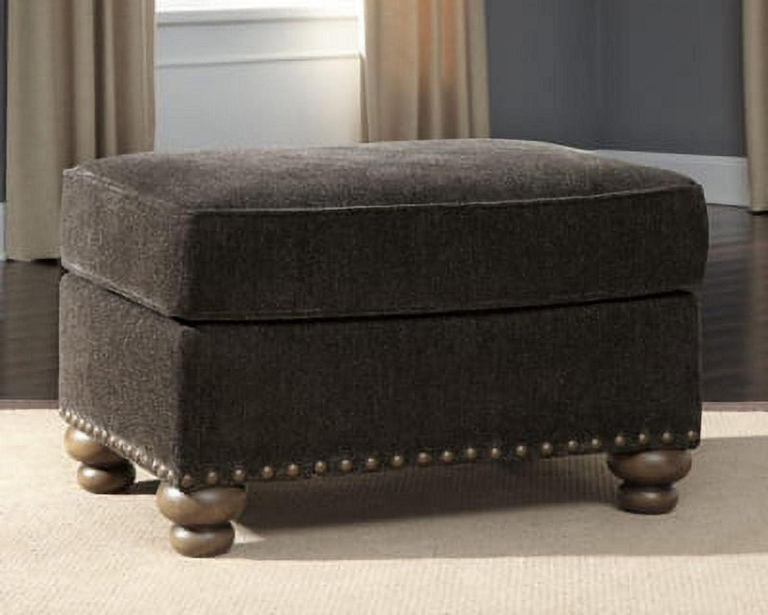 Everyone can have the best seat in the house with the Stracelen ottoman. Nailhead trim puts the finishing touches on the traditional roll arms you love. Plush cushion with high-pile chenille fabric keeps you feeling relaxed. Turned feet in burnished light brown finish show that style and quality flow from top to the bottom.