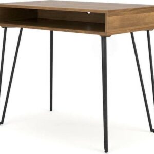 Sporting a sleek and simple profile, this home office desk is casual contemporary at its finest. The desktop is wrapped in a replicated brown wood grain and paired with decidedly mid-century style black legs for a familiar-yet-fresh design. And with an included open storage area and cord management raceway, this desk elevates your at-home workspace with both function and fashion.