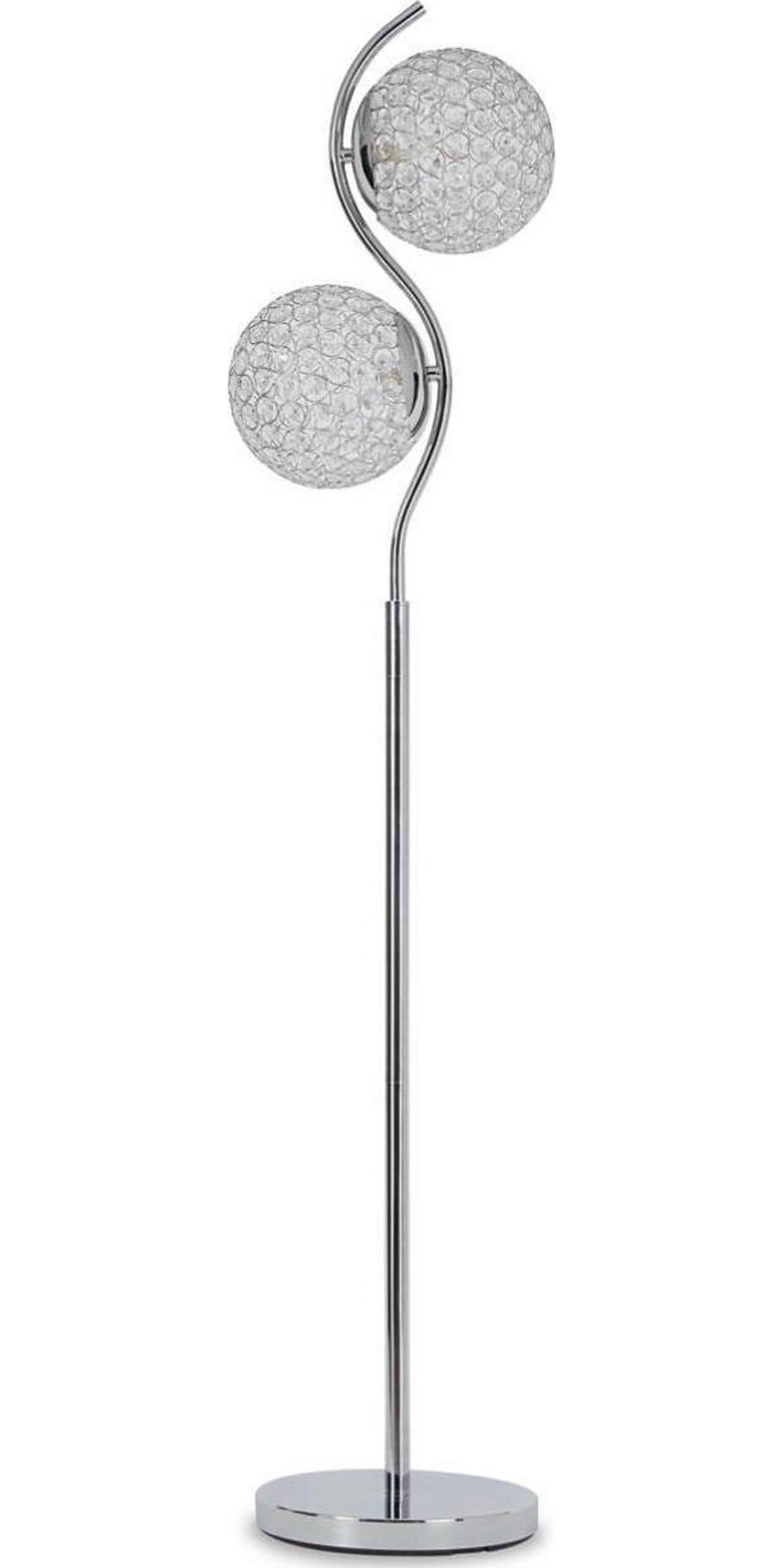 The Winter uniquely striking floor lamp showcases the beauty of transparency. A high-gloss chrome-tone candlestick base is enriched with 2 acrylic bead and metal dome shades giving clean, classic elements a chic upgrade.