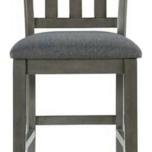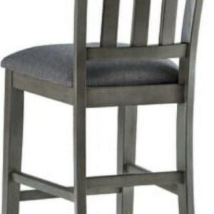 Cool and on-trend. This upholstered barstool sports a two-tone gray look for a contemporary-yet-casual feel. The cushioned foam seat in a gray textural fabric pairs seamlessly with the antiqued gray finish, while the contoured comb-back design adds a dash of geometric flair. With this chic seat, it s easy to dine in style.