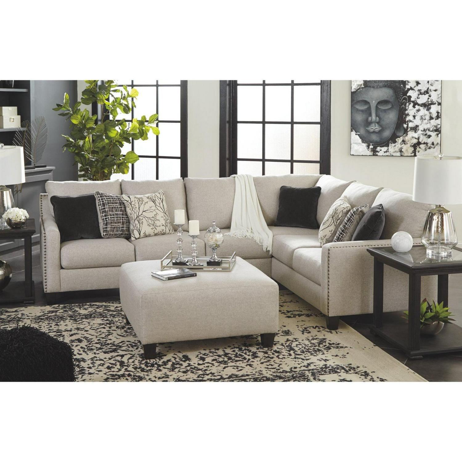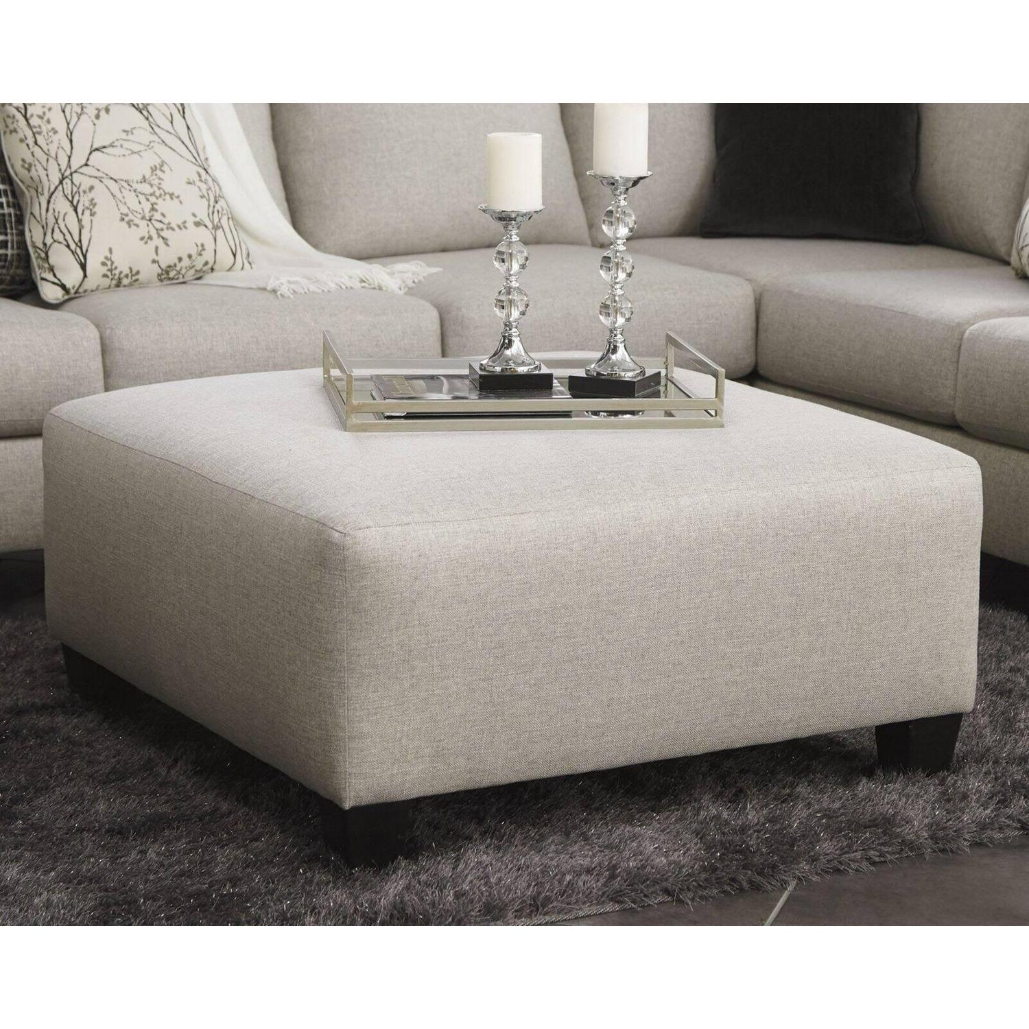 Effortless modern style begins with the Signature Design by Ashley Hallenberg Coffee Table Ottoman. This fog gray pillar of softness floats at the center of your living room, serving various purposes as the need arises. Use it as an extra seat, a footrest, and a coffee table. Lay out a large-format art book or a tray of noshes. A subtle linen-weave texture blends with a range of styles.