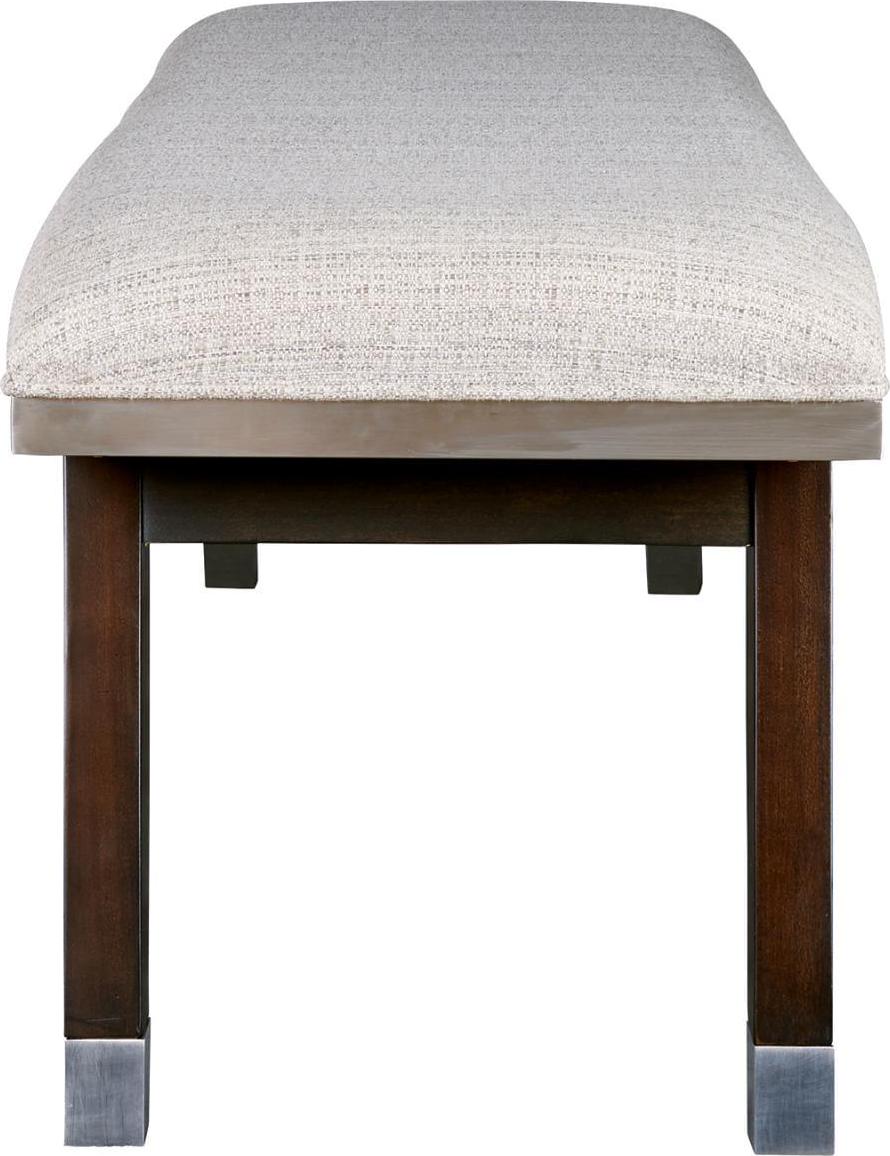 Turn ordinary into extraordinary with the Maretto bench. Covered in a richly textured Nuvella upholstery and supported by canted legs in an espresso brown finish with silvertone accents, this streamlined seat adds a touch of glam to any setting. High performance fabric is long-wearing and comes in a naturally neutral hue, making it easy to pair with other bedroom pieces.