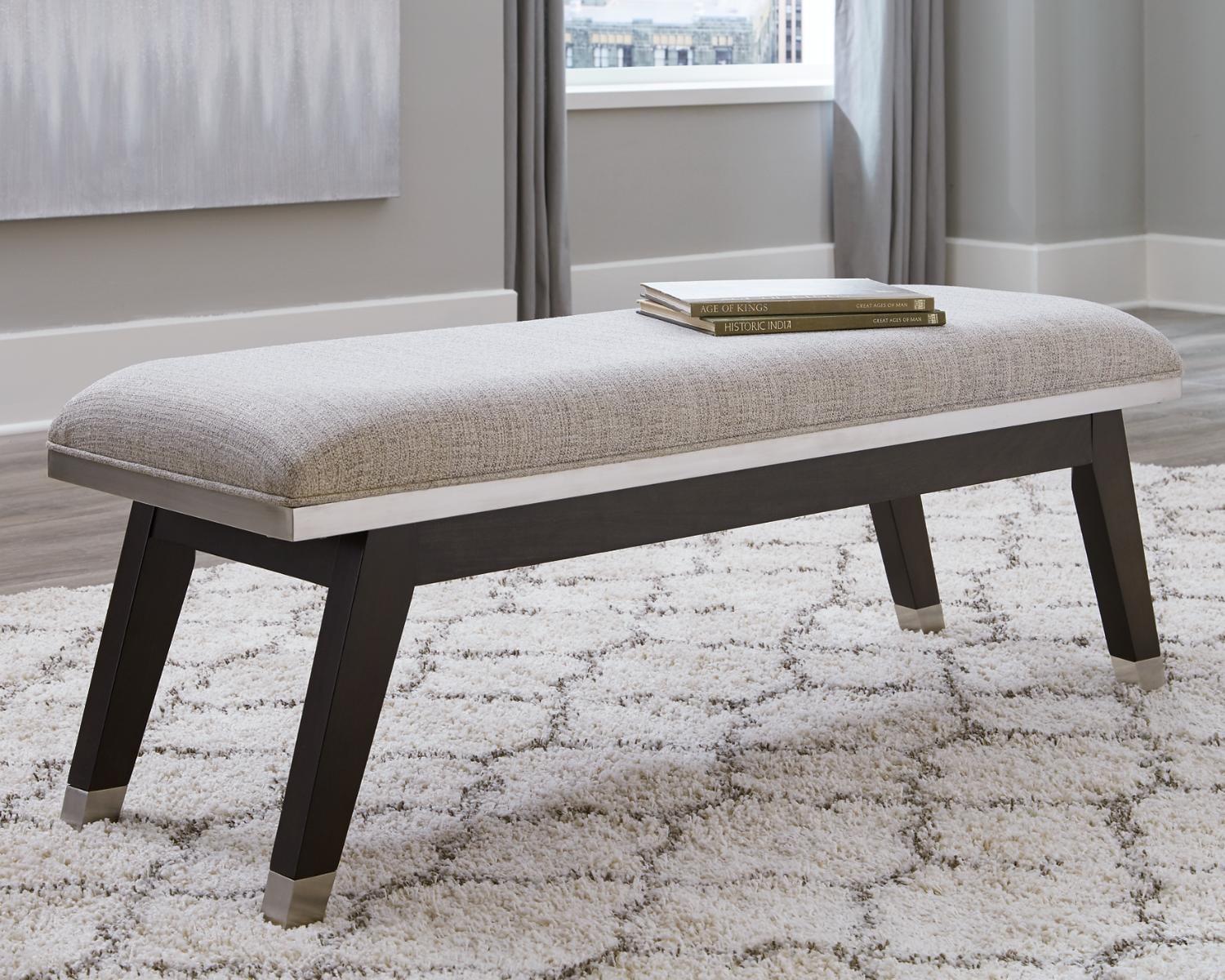 Signature Design by Ashley Maretto Espresso Brown/Silvertone Upholstered Bench